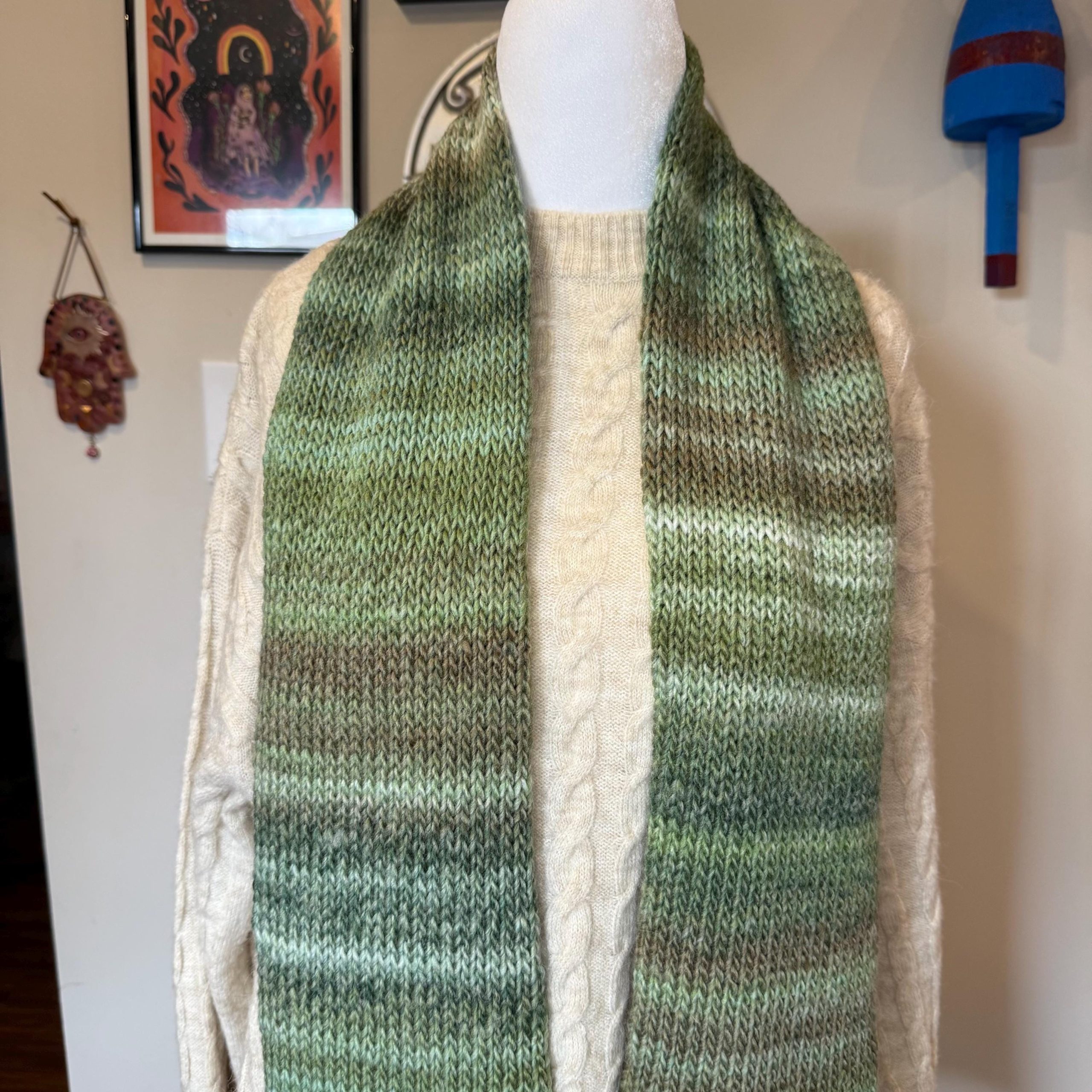 Knit green scarf, handmade by me!