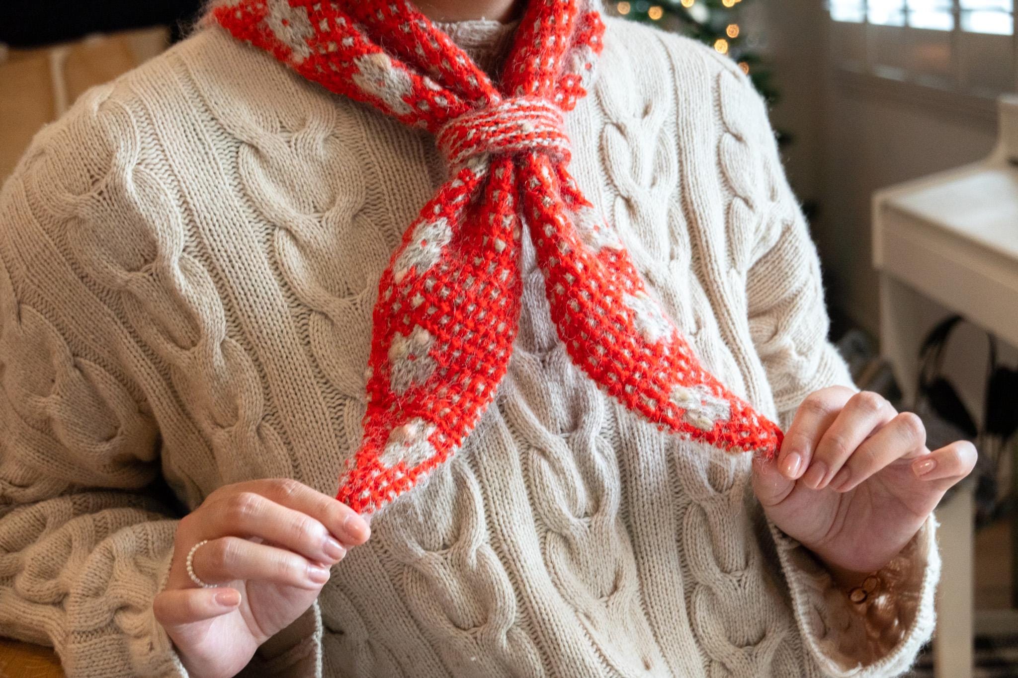Stay warm and stylish this winter with this beautiful handmade knit kerchief! This kerchief is made with soft, high-quality wool and can be worn in a versatile way. It’s the perfect accessory to add a pop of color to any outfit.